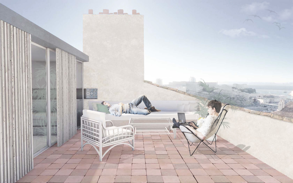 Création d'une liaison verticale interne et d'une terrasse à la marseillaise
