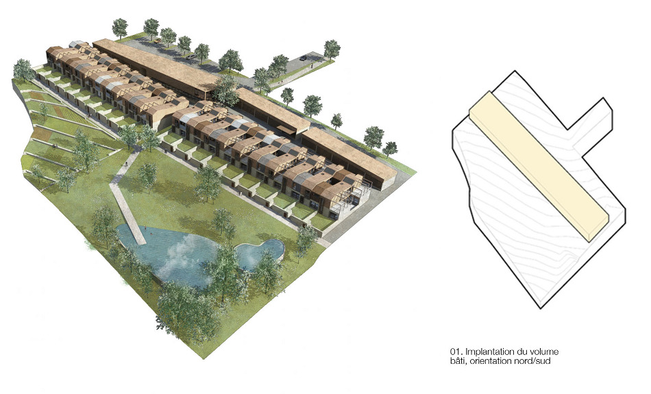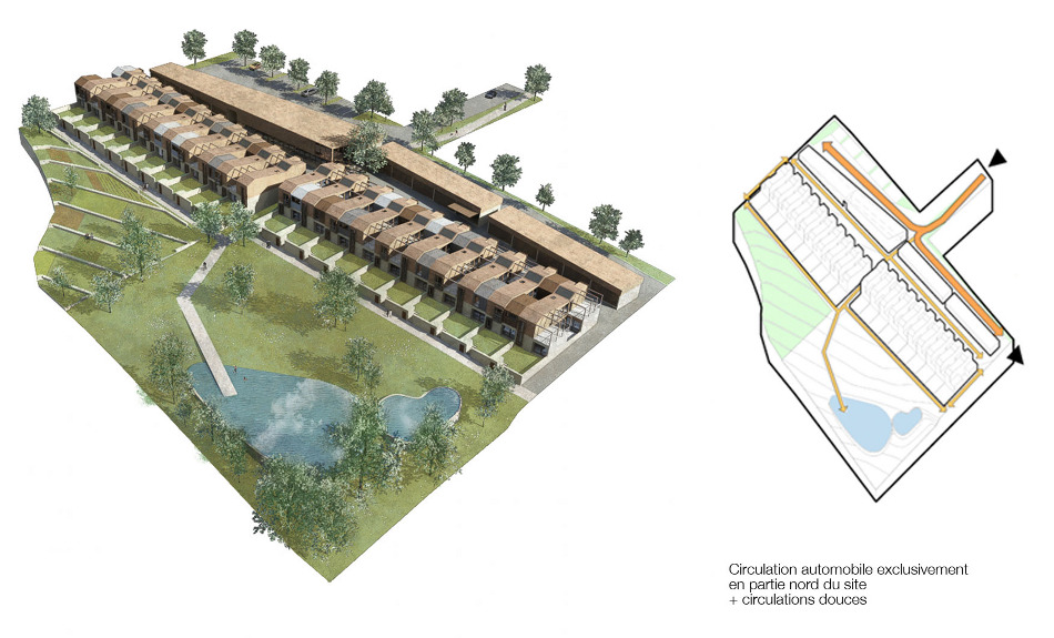 Cette idée se décline ici sous trois séquences qui permettent d’apporter au projet diversité architecturale et paysagère, en proposant à l’usager une série d’évènements qui anime sa manière d’habiter.